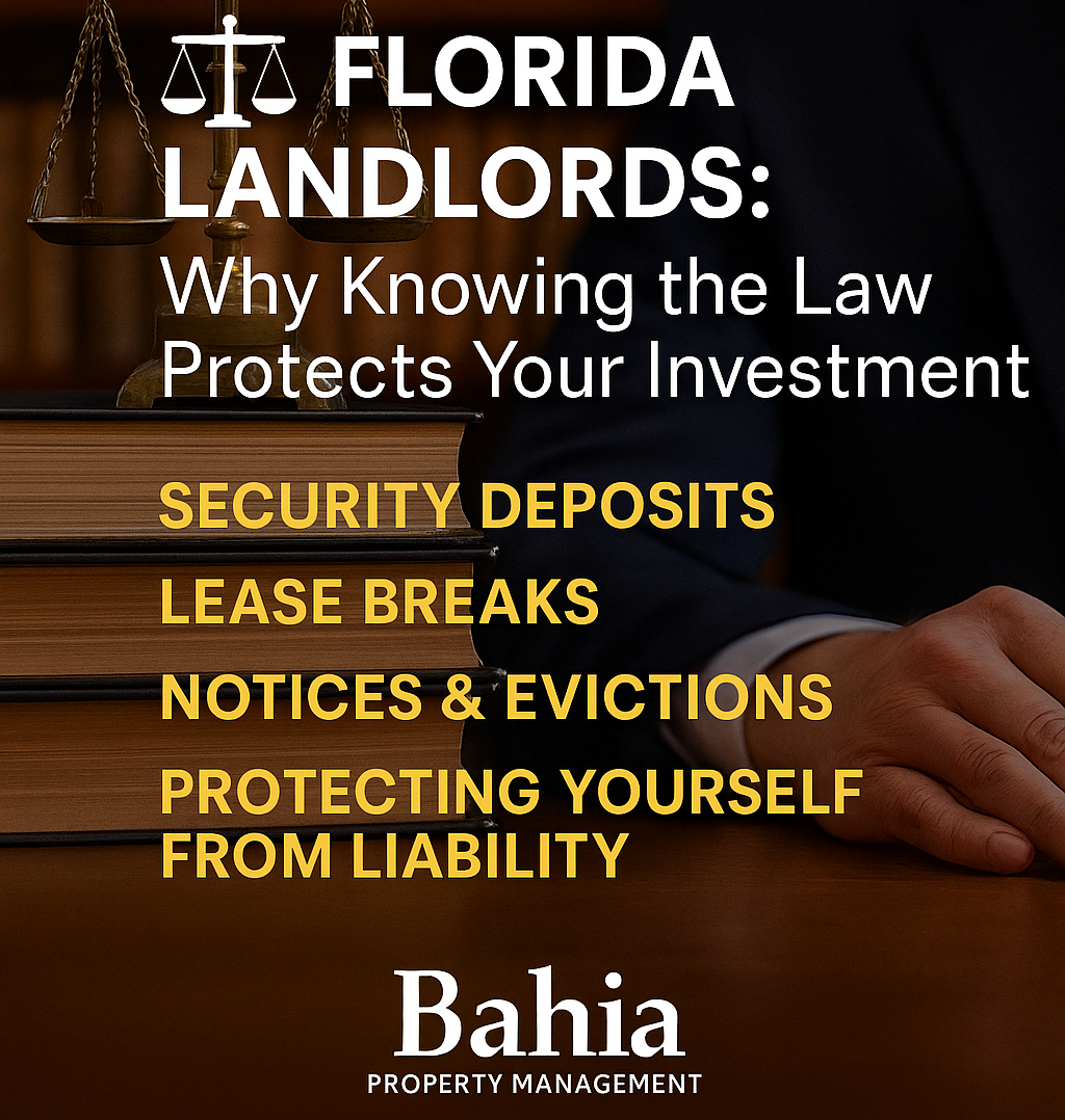 At Bahia Property Management, we make it our mission to help landlords in Miami, Tampa, and Orlando stay protected, compliant, and stress-free. Let’s break down why “knowing the law” is one of the most important aspects of property ownership.